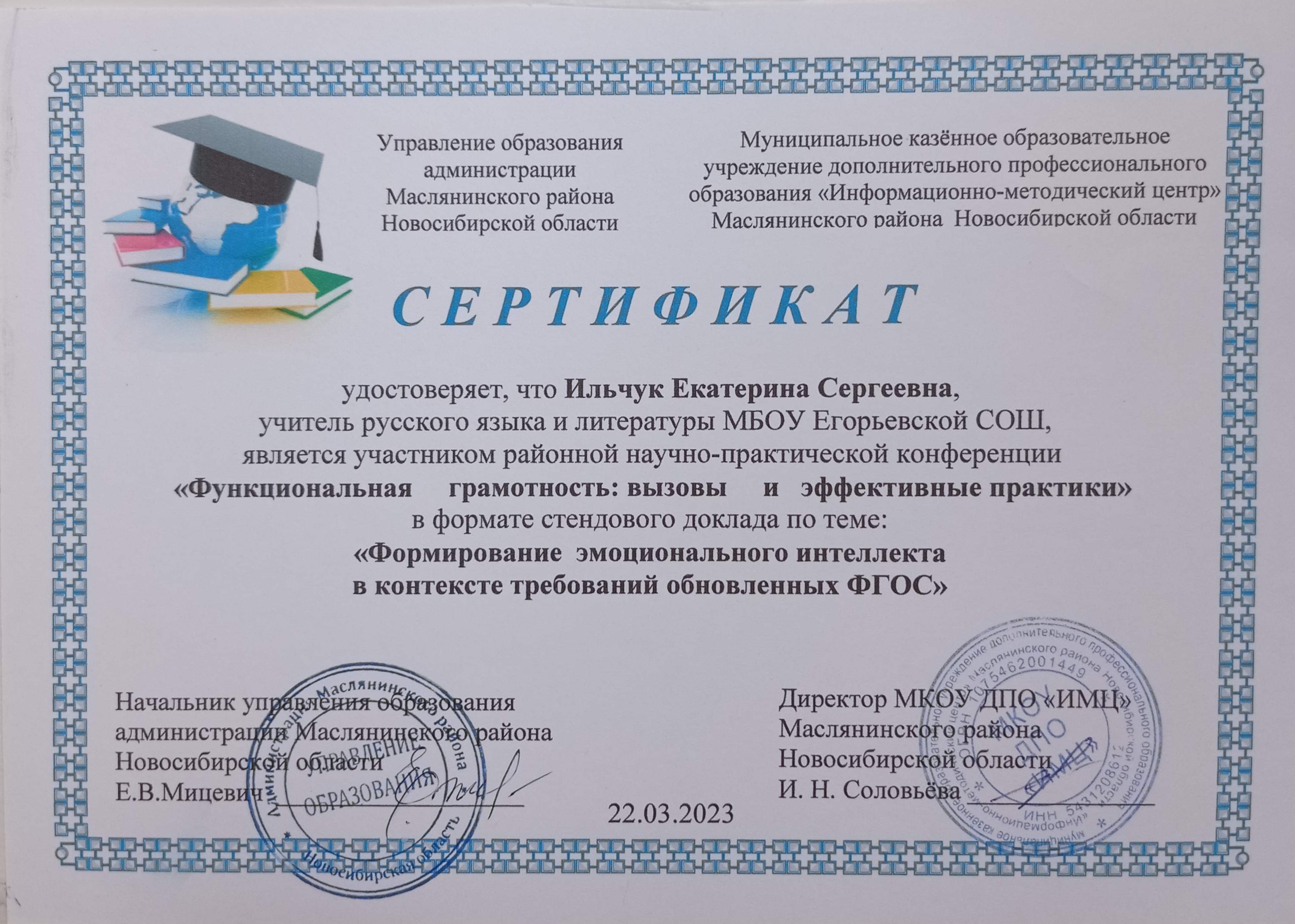 Районная научно-практическая конференция, стендовый доклад по теме "Формирование эмоционального интеллекта в контексте требований обновлённых ФГОС"