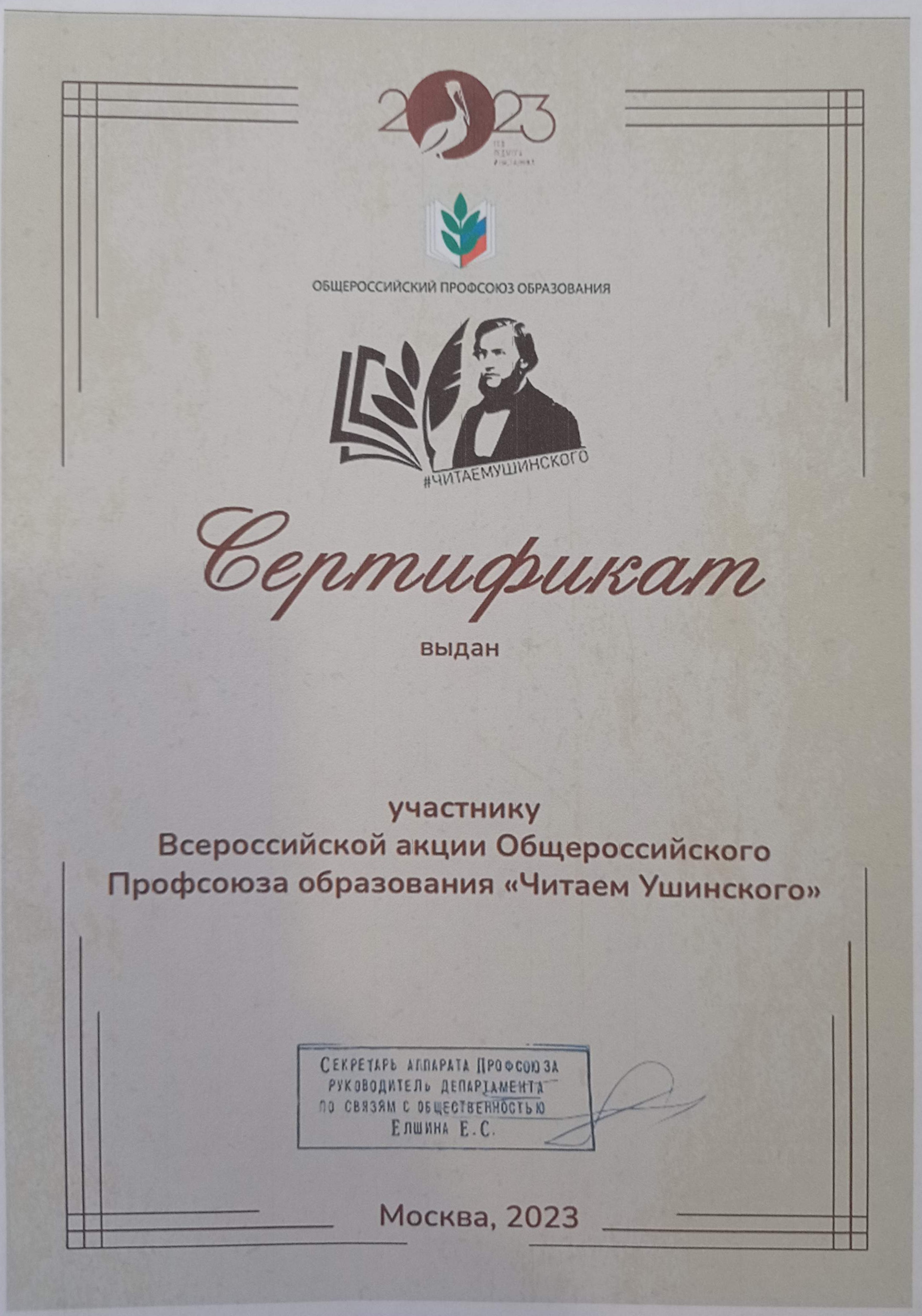 Всероссийская акция Общероссийского Профсоюза образования "Читаем Ушинского