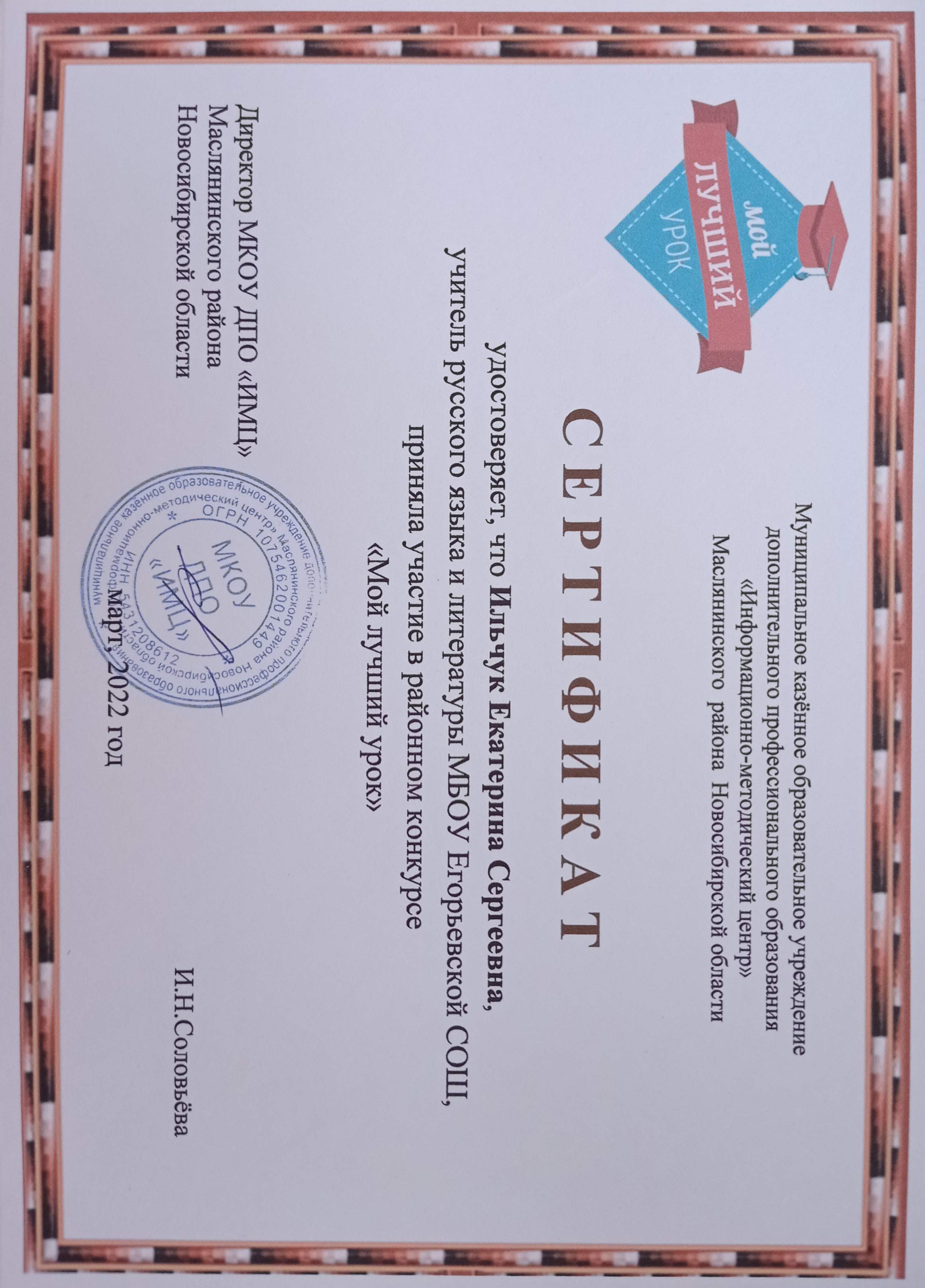 Районный конкурс профессионального мастерства "Мой лучший урок", 2022г.